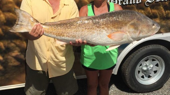 Chris, Annette and their crew were fishing in his 22-foot Blazer Bay around 9 p.m. Friday when the big red inhaled a piece of cut mullet.