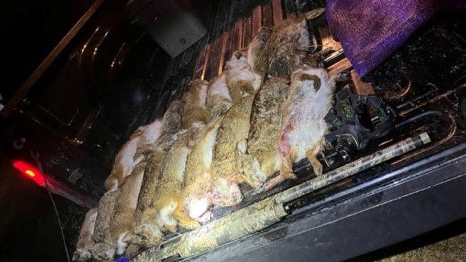 Agents made contact with the men and found them in possession of 17 rabbits, two lights and a shotgun. During questioning, Alveris told agents he did not shoot any of the rabbits.