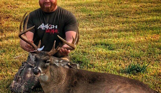 “I didn’t figure this was the big buck I was looking at since he hadn’t made an appearance except that one time in the middle of the night,” he said. “I was a few yards away from my stand and I knew if I tried to climb in, I’d spook the deer. I decided to go to Plan B: I eased to the ground to wait until it was light enough for me to see.”