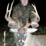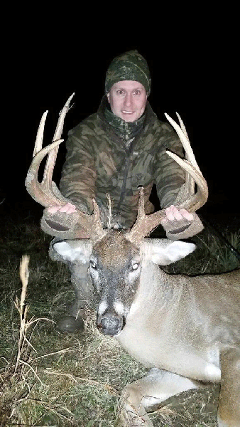 The buck, which tipped the scales at 250 pounds, sported 9 points on a heavy rack featuring a 17 ½-inch inside spread and 22-inch main beams. The deer green-scored 160 2/8 inches at Simmons Sporting Goods, and is currently in 2nd place in the 9-point category.