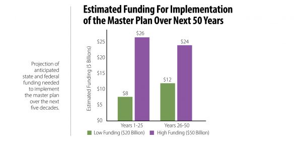 Restoration plan relies on state, federal revenues for $50 billion budget