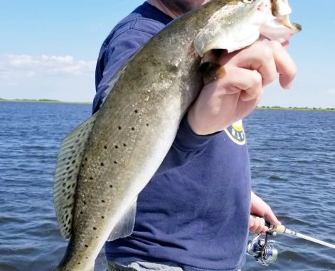 Delacroix guide Capt. Casey Brunning finds speckled trout not yet fully inside, but more so in the fringe bays this month.