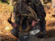 Monday morning, Nov. 13, he was back on his stand and watched several does come out to the feeder he had placed on a shooting lane. Climbing down late morning, he walked down to Sugar Creek 200 yards away, and put out some estrus urine.