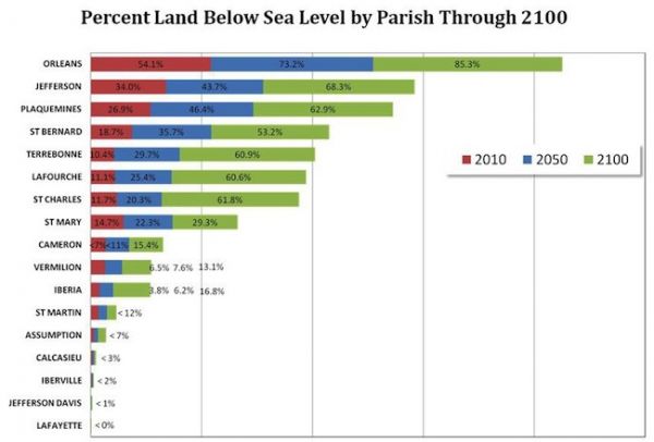 “What we see is that the [southeast] Louisiana coast averaged three feet of relative sea-level rise the last century,” said NOAA’s Steve Gill.