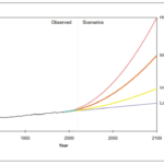 The first shows current trends holding steady, resulting in about an eight-inch rise globally.