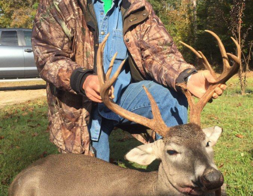 The buck sported a heavy rack with 16 points plus a couple of small sticker points. The inside spread was 17 ½ inches with some palmation, and the 165-pound buck had heavy mass through the rack.