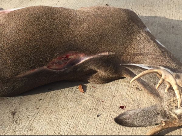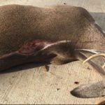 She skimmed the buck’s neck on the right side, but didn’t break the skin — and the bullet zipped over and cut a line straight down the deer’s back to its spine.