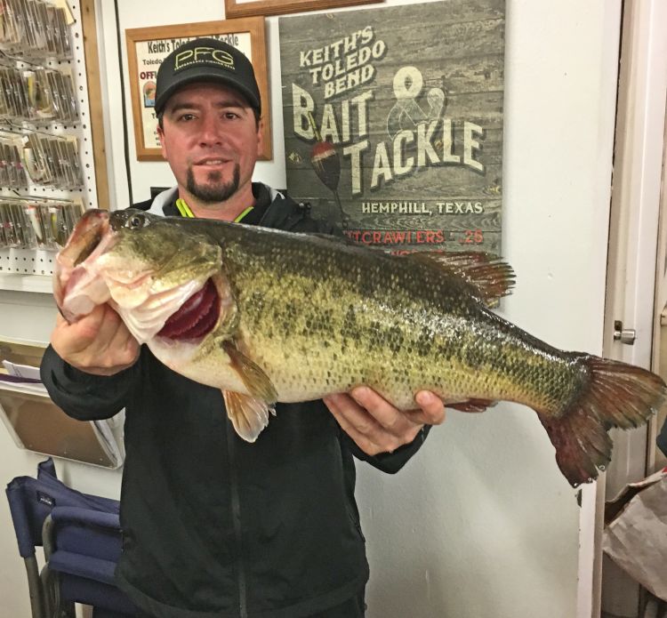 Arnold’s big bass was the 20th fish entered into the Toledo Bend Lunker Bass Program during the 2017-18 season, according to the Toledo Bend Lake Association. He weighed the bass in at Keith’s Toledo Bend Tackle.