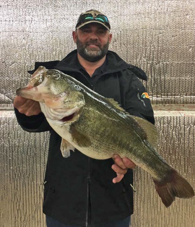 Lafayette’s Eric Arnold was fishing the Skeeter Bass Champs event Feb. 17 when the huge bass swallowed his 5/8-ounce Talon football jig. After he landed the fish, he quickly put it in the livewell and went back to fishing.