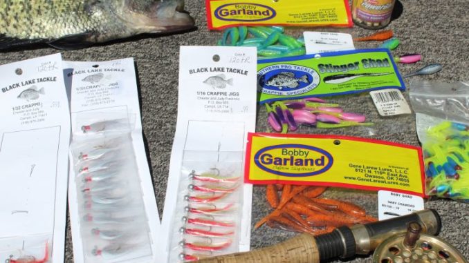 He never puts a jig in the water without a white or chartreuse crappie nibble. In fact, he buys those by the case.