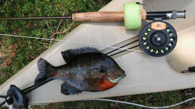 Redears will be bedding this month in slightly deeper water. For the chinquapins, let your Cap Spider, Fluff Butt, Cajun Tickler or weighted Woolybugger get to the bottom, then strip in very slowly. The strike often comes on the rise.