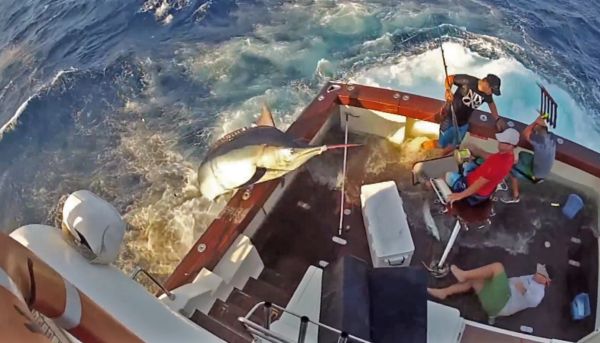 VIDEO: 600-pound marlin jumps into boat