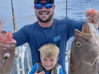 While fishing in the Swollfest in Grand Isle, Matt Maier had a remarkable grouper double hook up while fishing with youngster Cannon Maier.