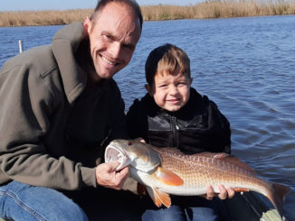 Thomas Byard with a nice redfish he caught while kayak fishing in the Calcasieu Lake marsh.
