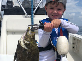Four-year-old Wills Powell with his first tripletail caught around Flatboat Key under a crab trap buoy.[…]