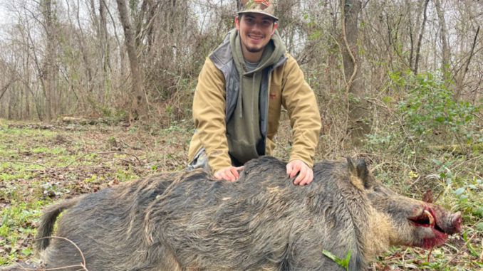 Washington Parish hunter downs hog with giant tusks